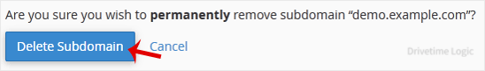 5. For confirmation, click on Delete Subdomain to remove your subdomain permanently.