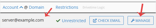 4. If your email address is server@example.com, you should see a Manage option on the right side of your email address. Click on Manage.