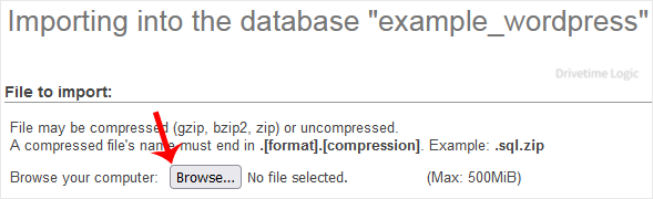 3. From the navigation tree in the left sidebar, select an appropriate database in which you want to import data using the SQL file.